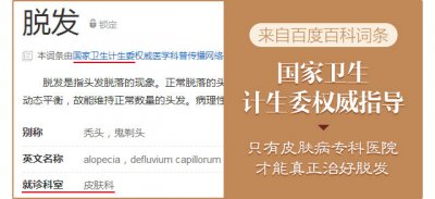 专家建议:脱发需选择正规医院皮肤科治疗,脱发是一个慢慢发展严重的问题,并且每位发友的病因、病情不同,好检测病情后选择对症治疗方案,及早发现,及时对症治疗,不做无用治疗,这是减少治疗费用的一大因素。