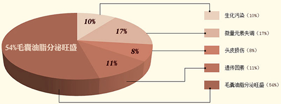 引起脱发掉发的因素有雄性激素、神经性脱发、营养缺失导致微量元素失调、皮脂腺分泌过旺、遗传等因素。这些因素大致可归类为内因和外因:内分泌失调和头皮环境恶化。